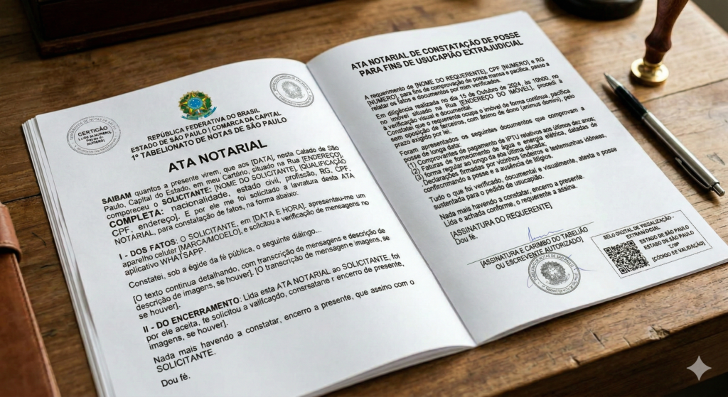 Para a Usucapião Extrajudicial, a Ata Notarial é o documento que consolida a prova da posse. Veja como ela se encaixa em cada exigência: